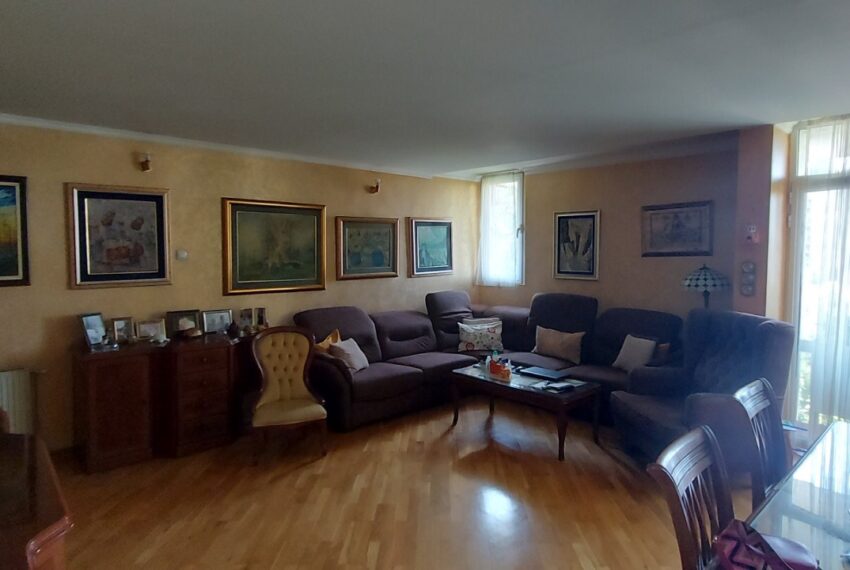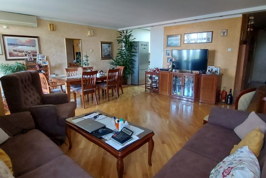 Sastoji se od dnevne sobe i trpezarije, povezane sa kuhinjom, tri spavaće sobe, toalet, kupatilo, dva balkona i dva hodnika.
