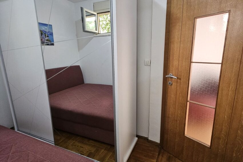 Stan se nalazi u polusuterenu, ima veliki balkon i izlaz iz dnevne sobe.